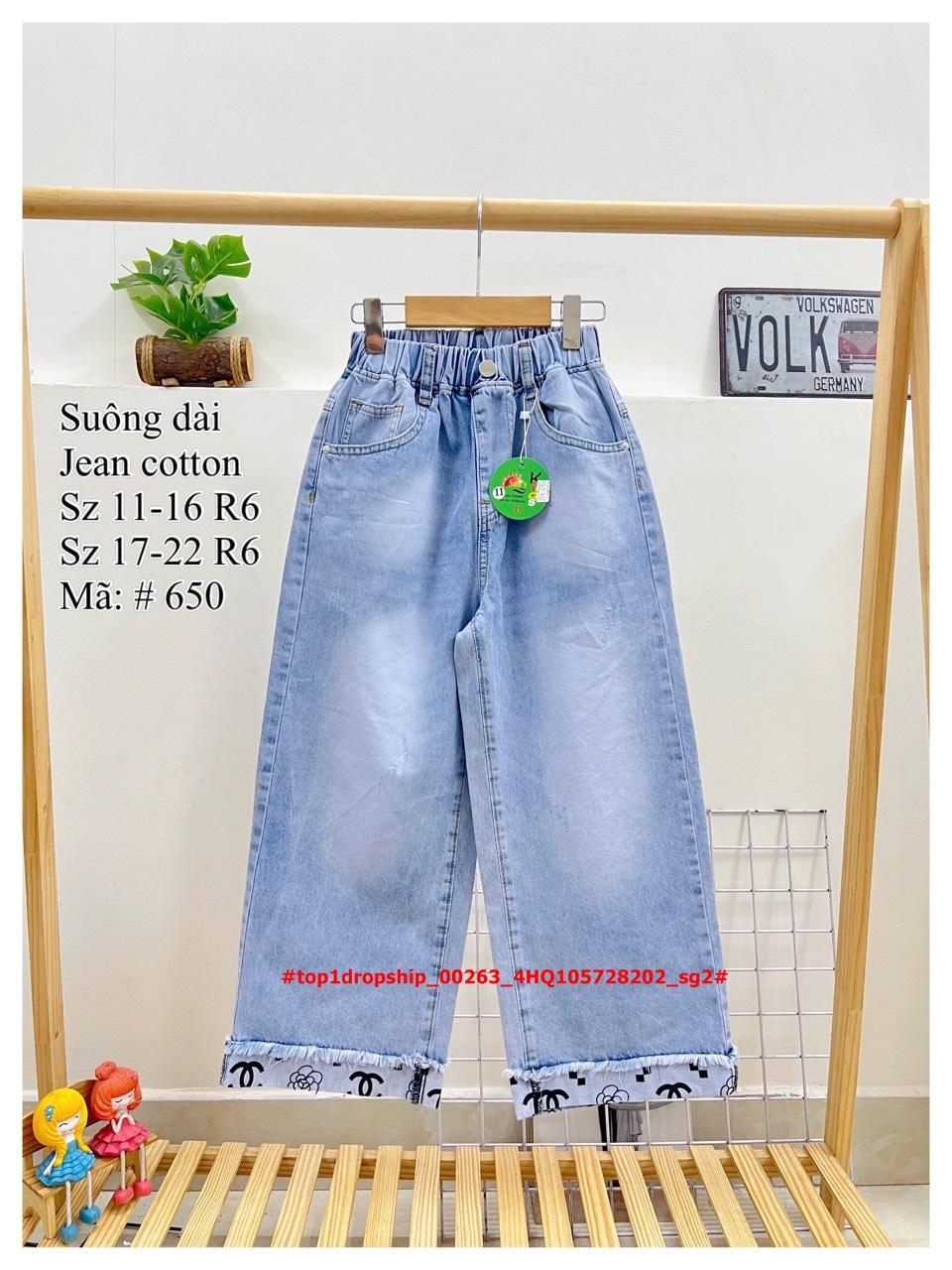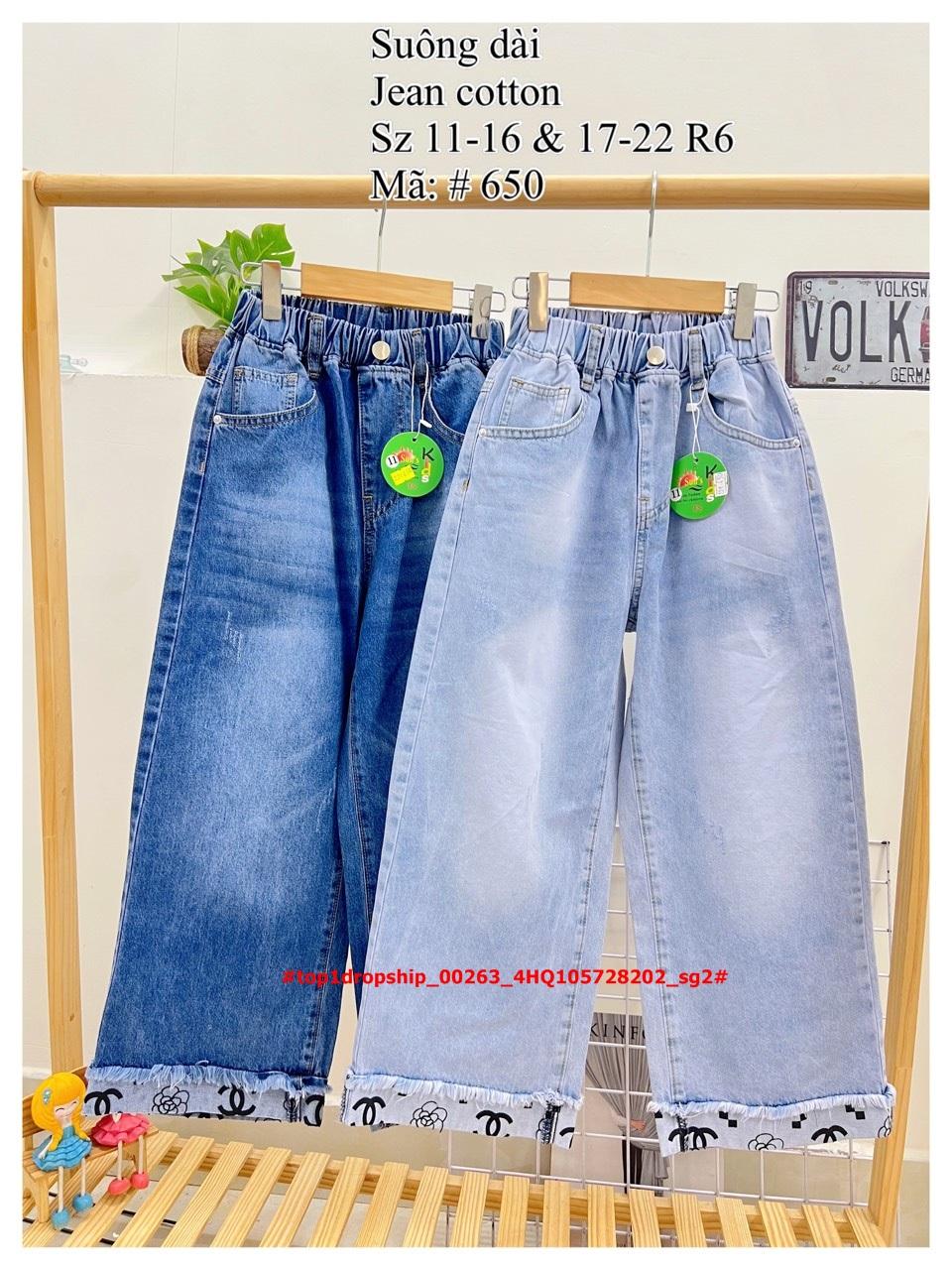 ☘️Buôn_sỉ_SG☘️ Quần jean bé gái, dai suông, chất jean cotton co dãn, wat màu đẹp, top1dropship_00263_4HQ105728202_sg2 CHÀO HÈ 2️⃣0️⃣2️⃣4️⃣ 💯 HÀNG SẴN bao hot 🔥 🌿🌿 Dòng size mới dễ bán 👍 ✔ chào lô quần DÀI SUÔNG mẫu in Chanel rất đẹp! ✔Wat tone màu LỢT-ĐẬM chất jean cotton mềm mát dễ mặc. 👉 Pom Khoảng 25-55kg ✅ SIZE đại 11-16 Ri6 giá 143k ✅ SIZE CỒ 17-22 Ri6 giá 153k Mã: # 650 #top1dropship_00263# #top1nhacungcap #top1dropship #bé_gáii #xuân_hè #thu_đông #Quần #jean
