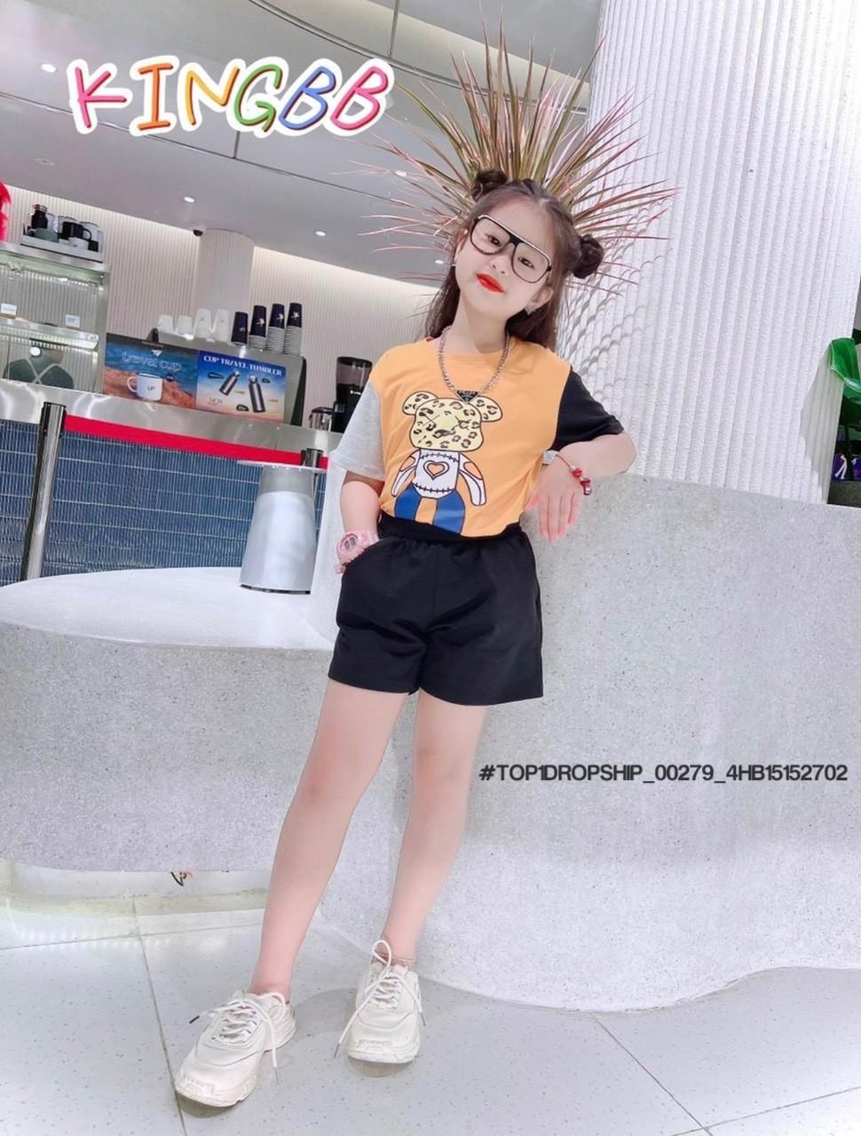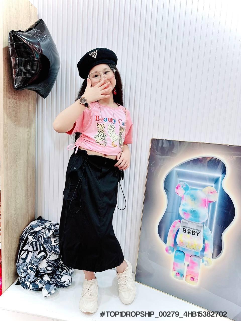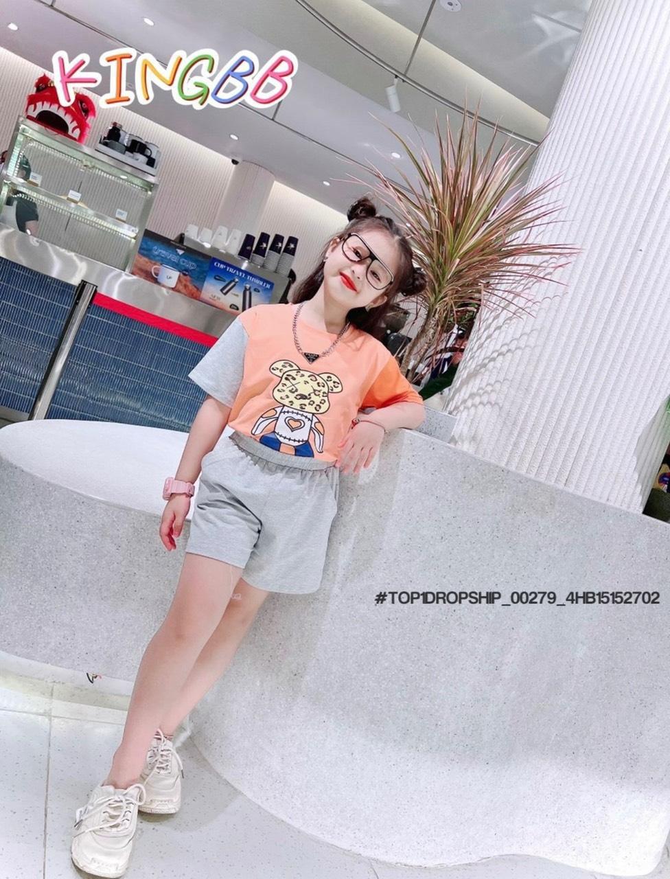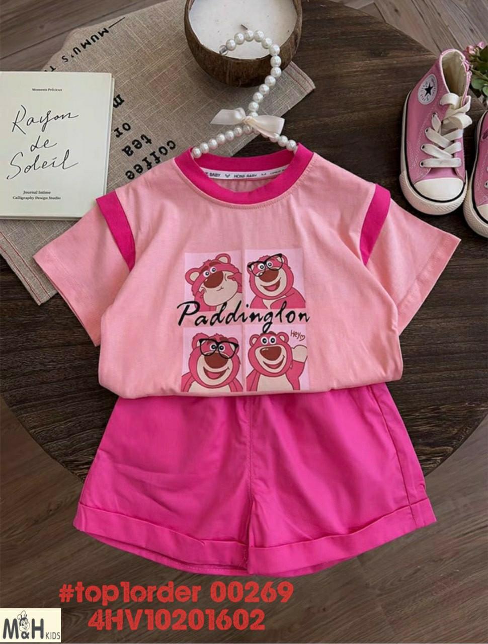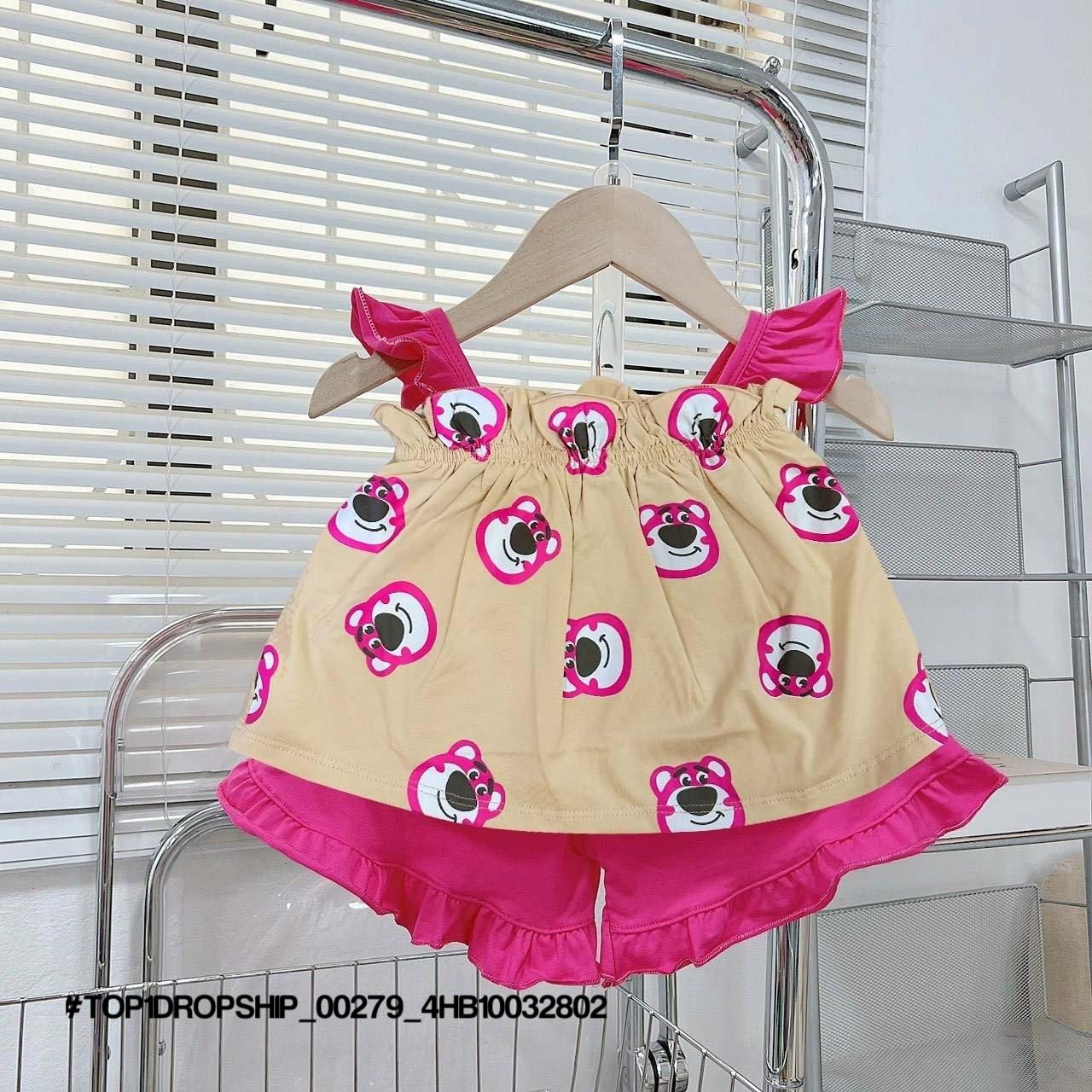 • Buôn_sỉ_HN Bộ bé gái, cotton, cộc tay, áo croptop, in gấu dâu, size 7t-14t - top1order_00283_4HB10261602_sg1