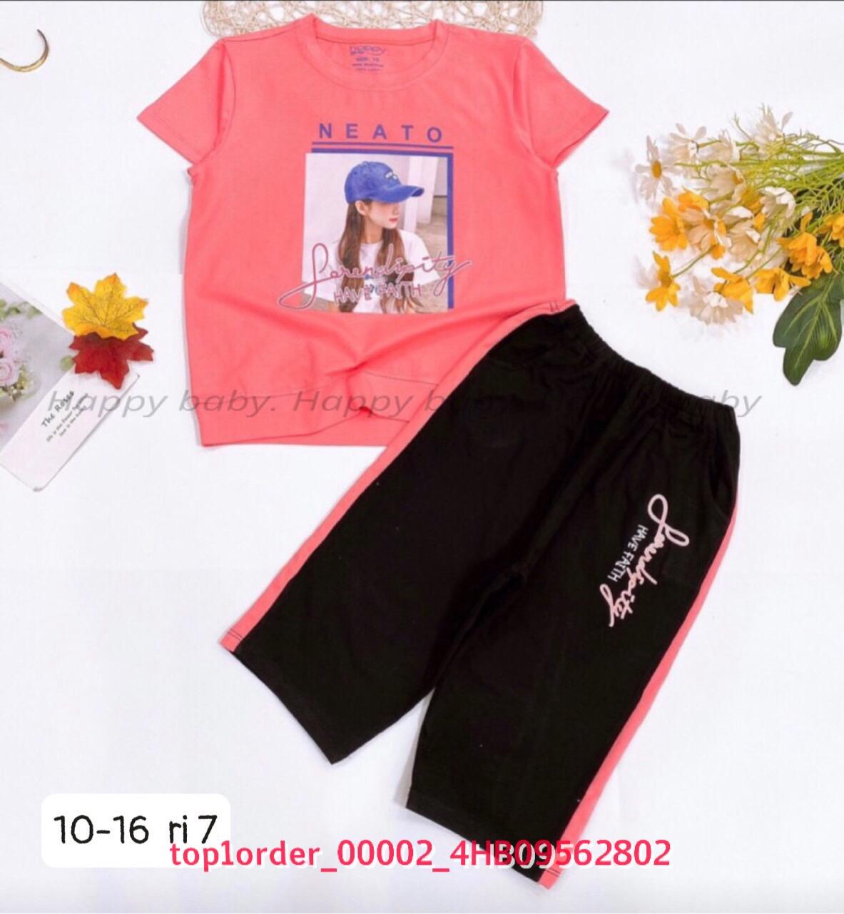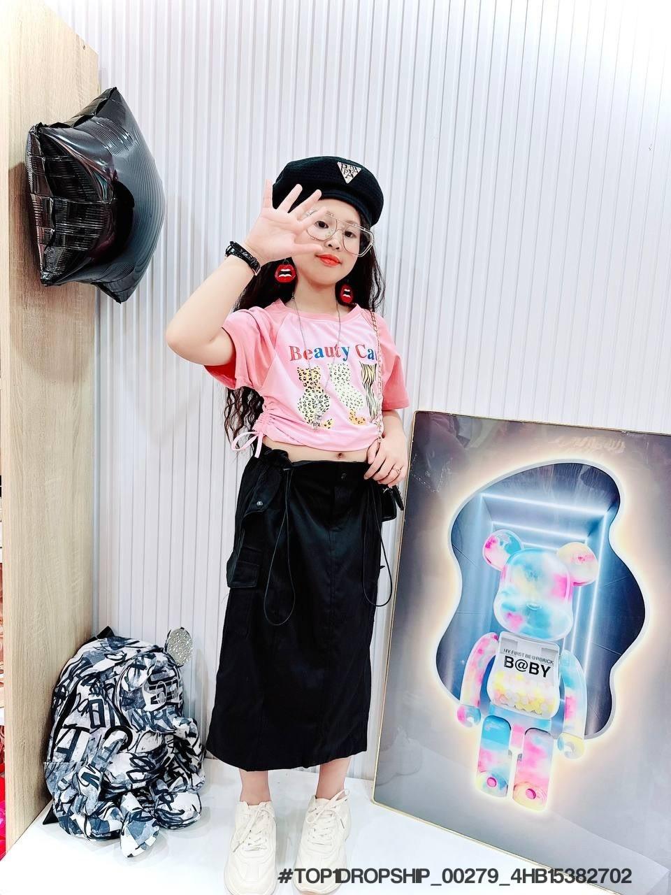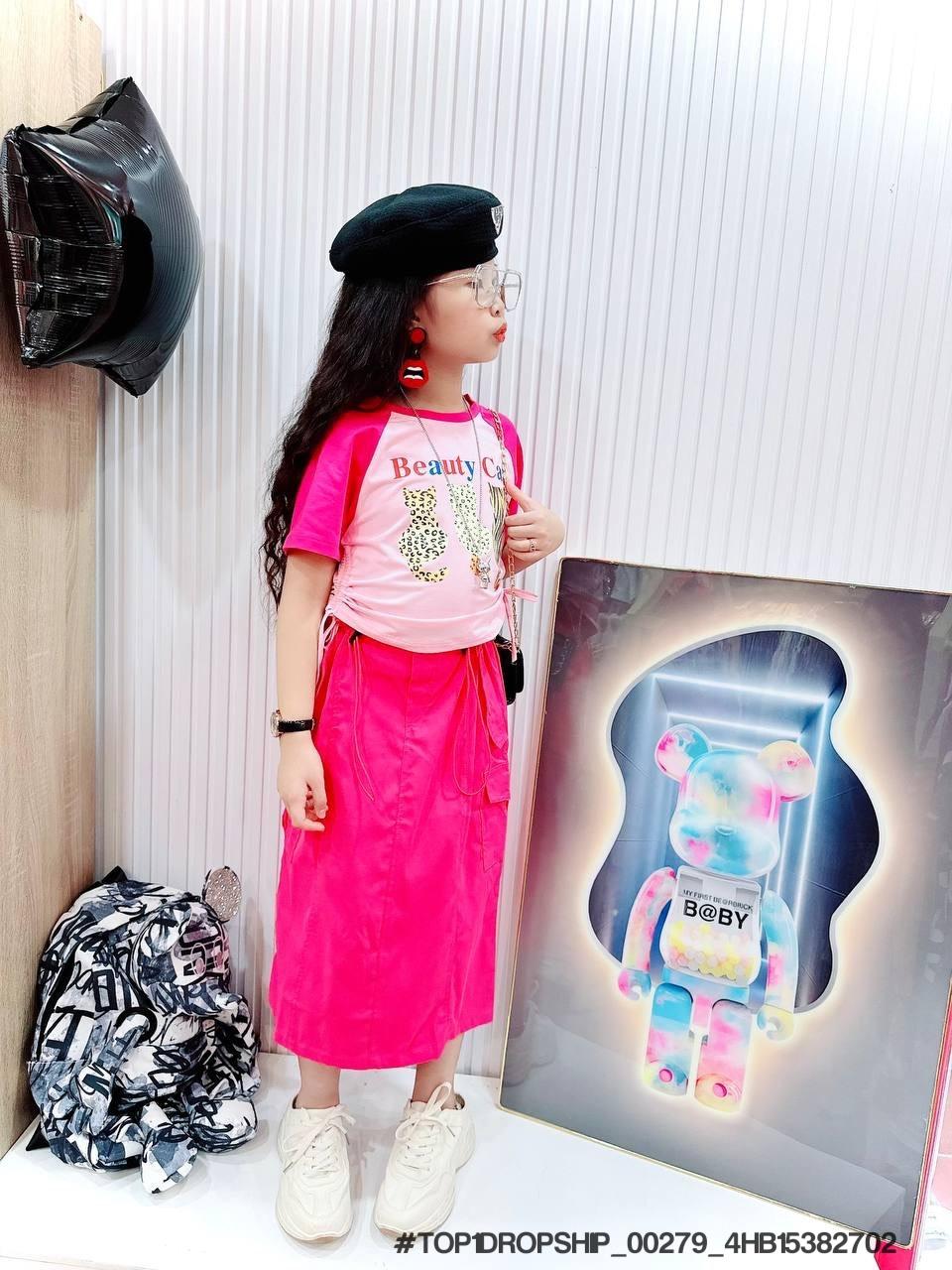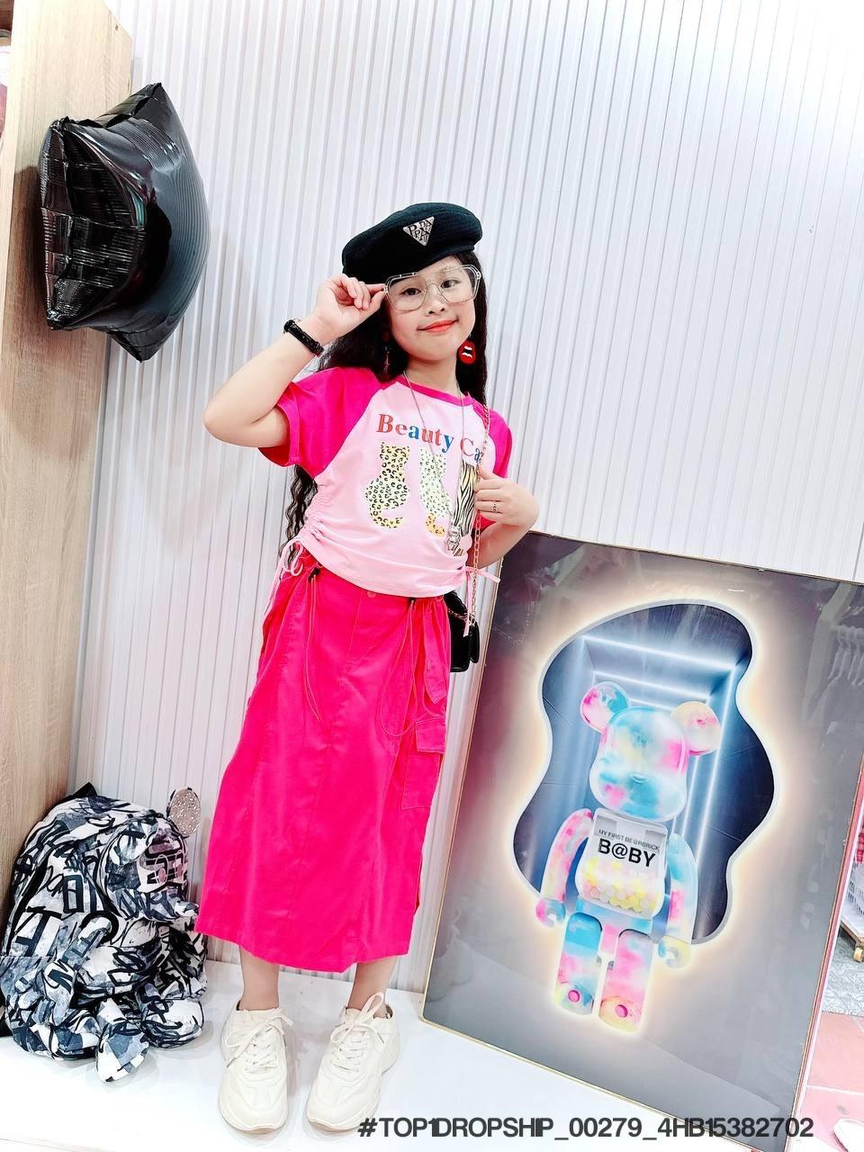 • Buôn_sỉ_HN Bộ bé gái, cotton, cộc tay, áo croptop, in gấu dâu, size 7t-14t - top1order_00283_4HB10261602_sg1