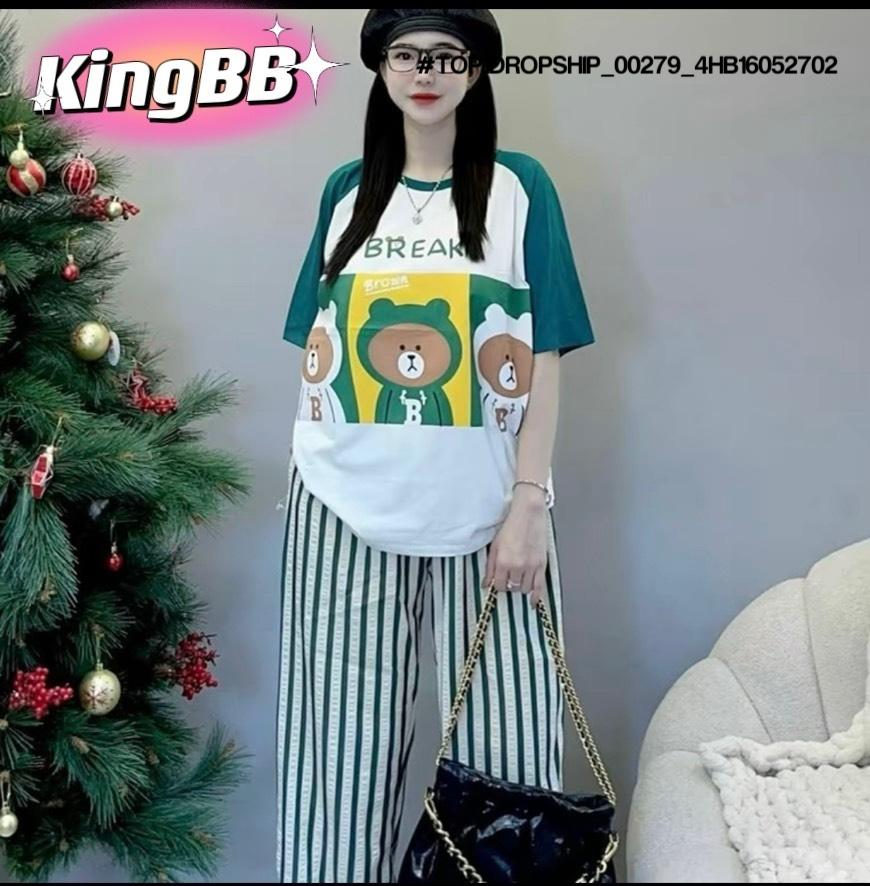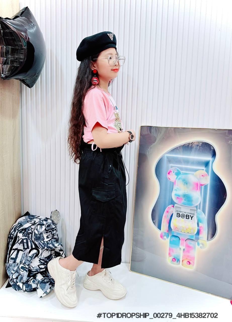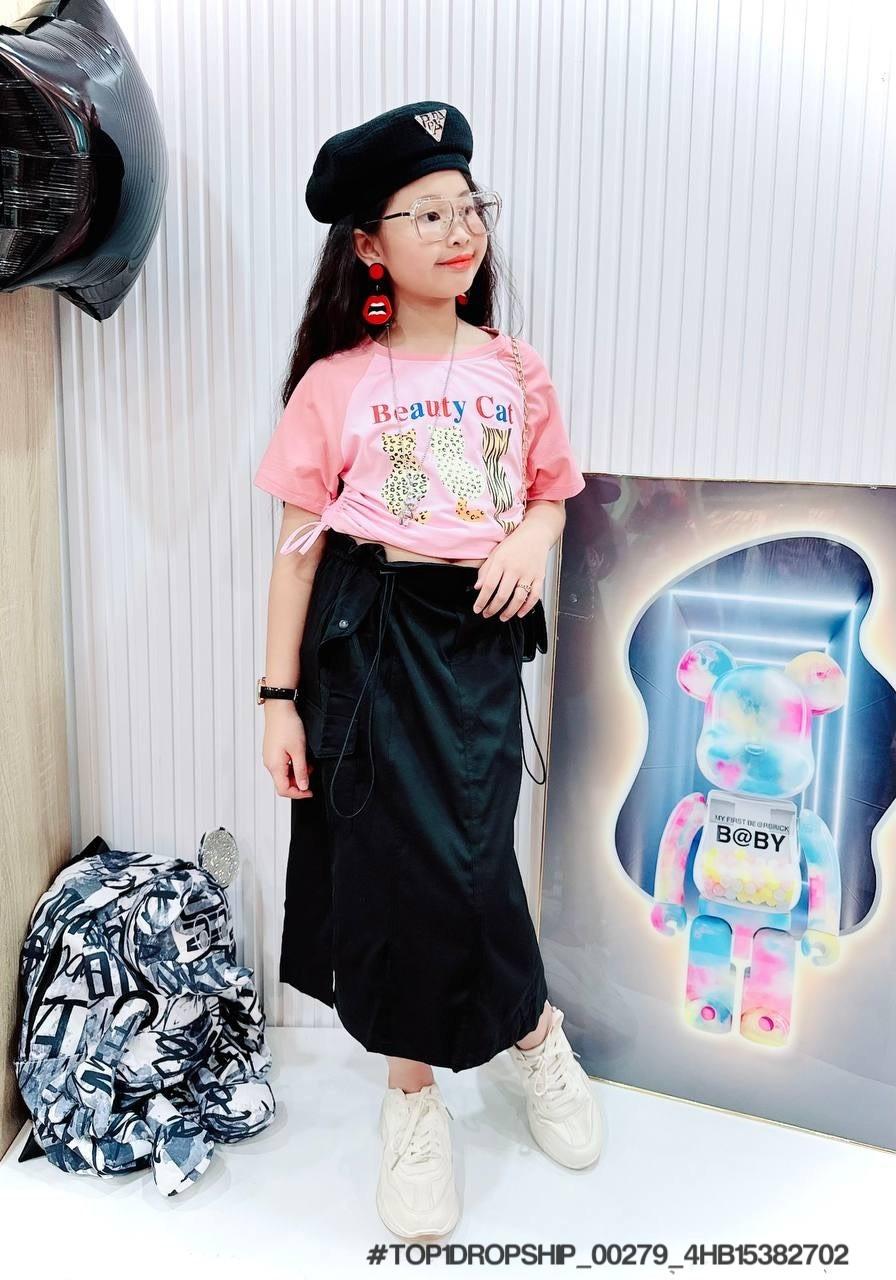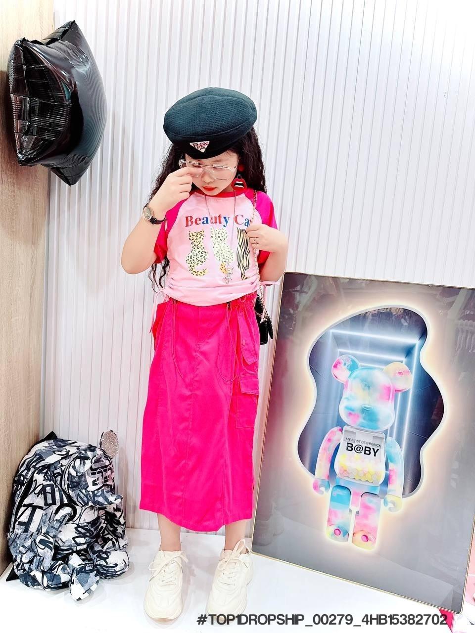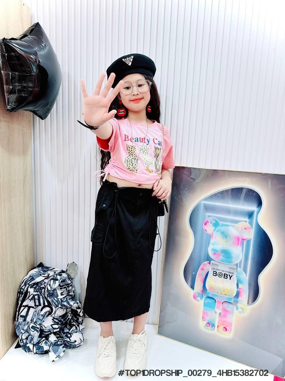• Buôn_sỉ_HN Bộ bé gái, cotton, cộc tay, áo croptop, in gấu dâu, size 7t-14t - top1order_00283_4HB10261602_sg1