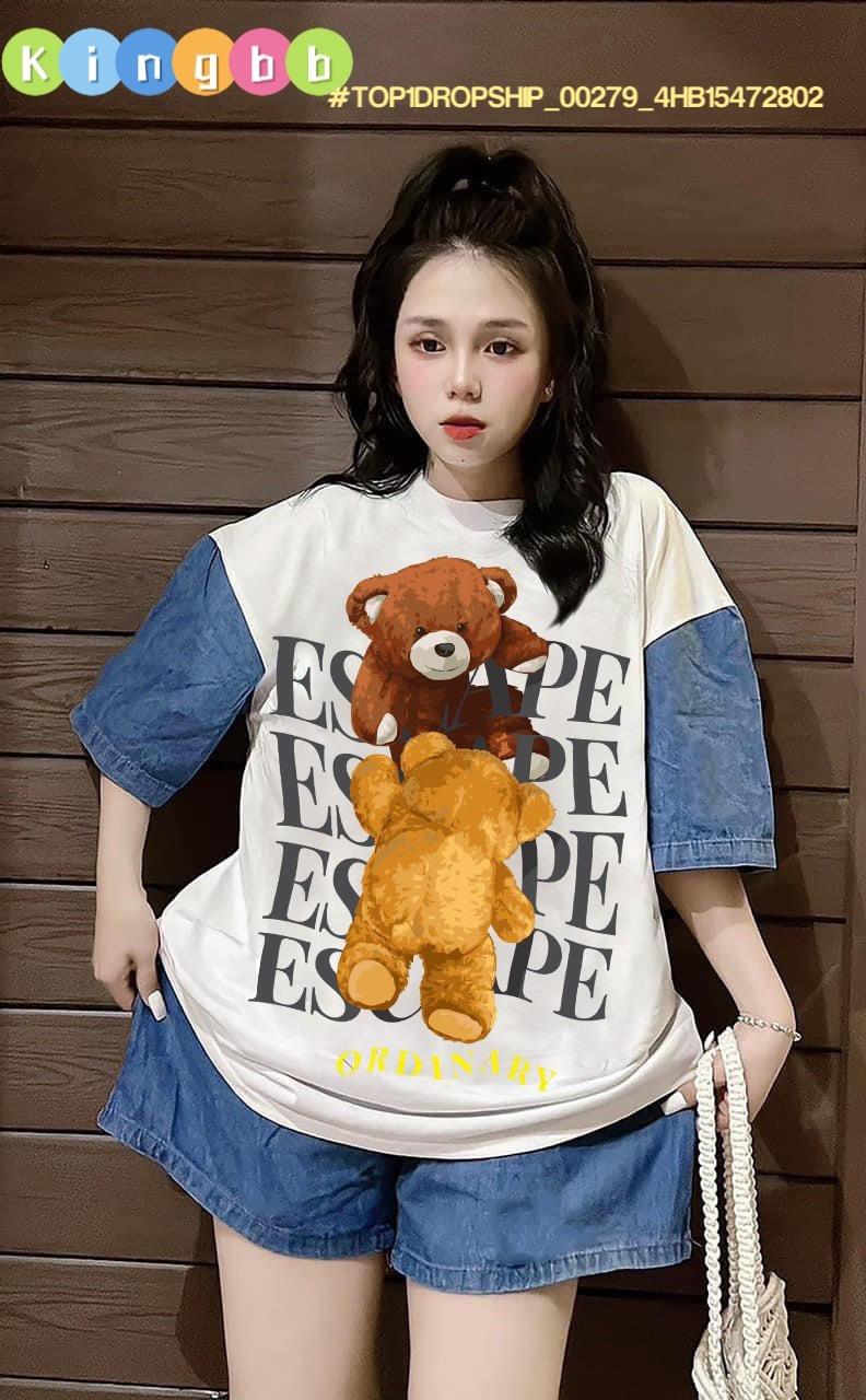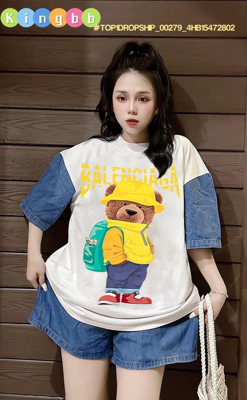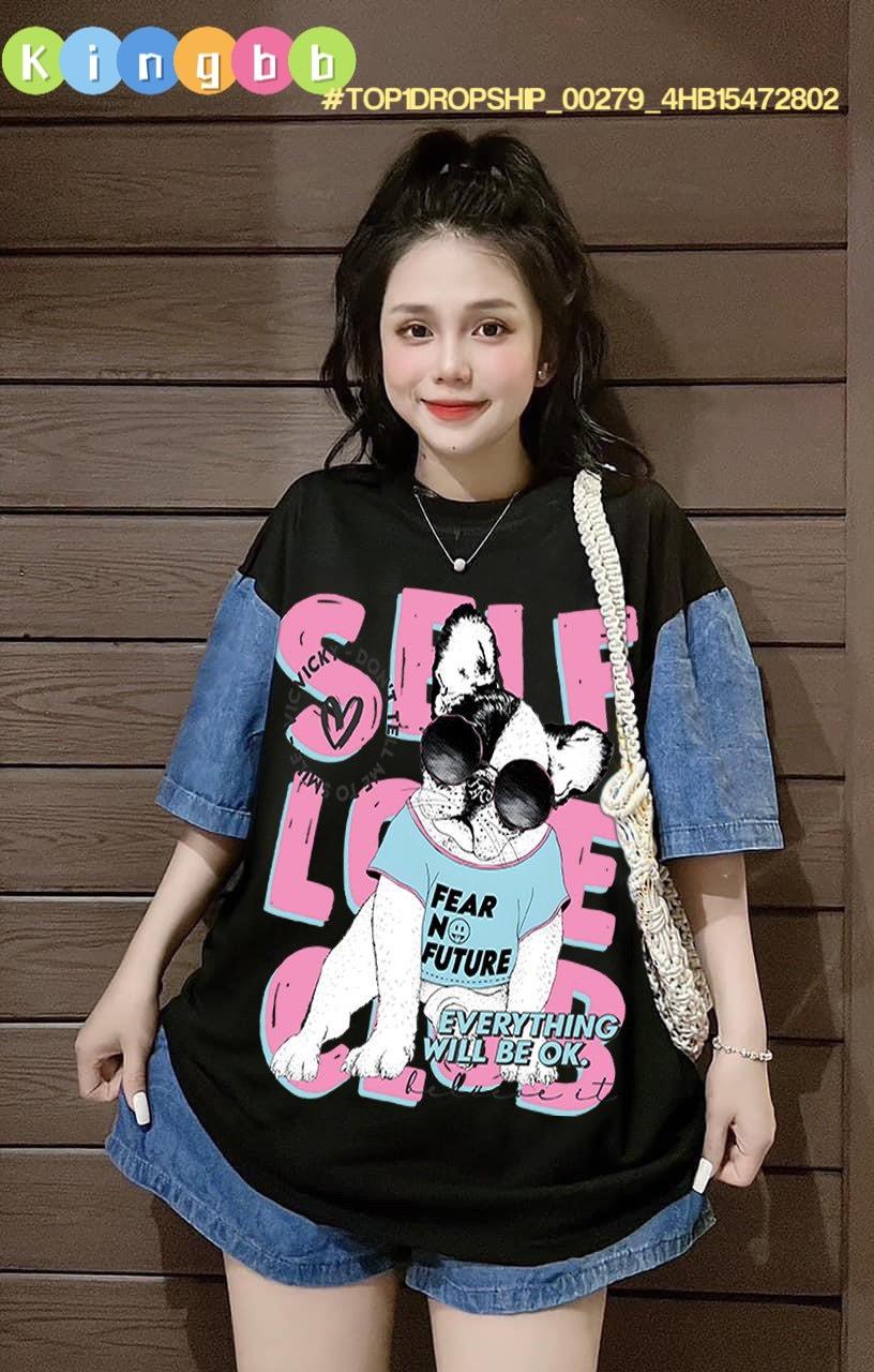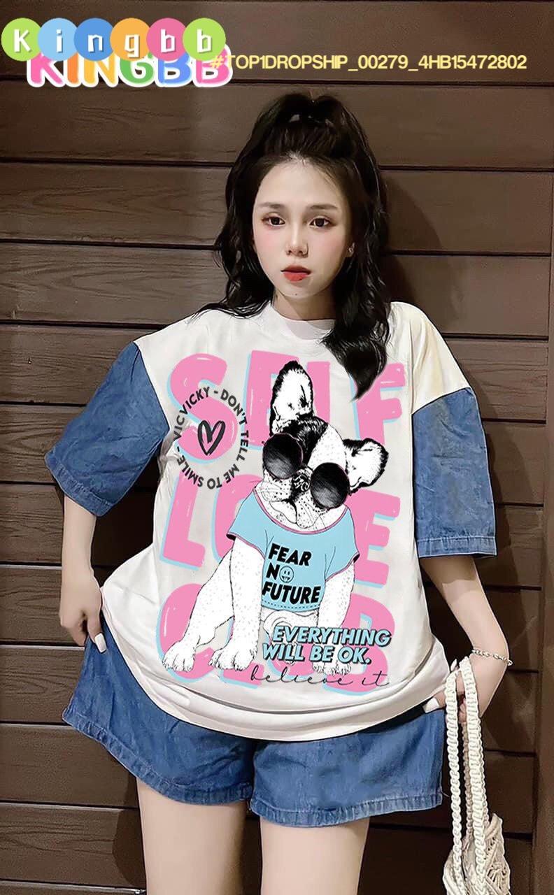 Chất liệu: quần sóc jean rách phối áo cotton sát nách in hình cô gái ngộ nghĩnh
