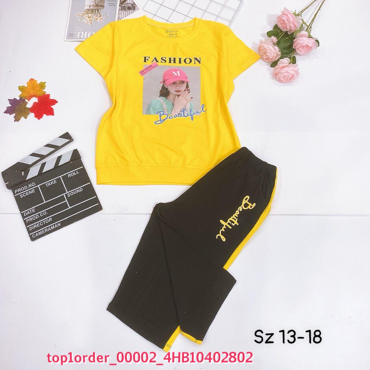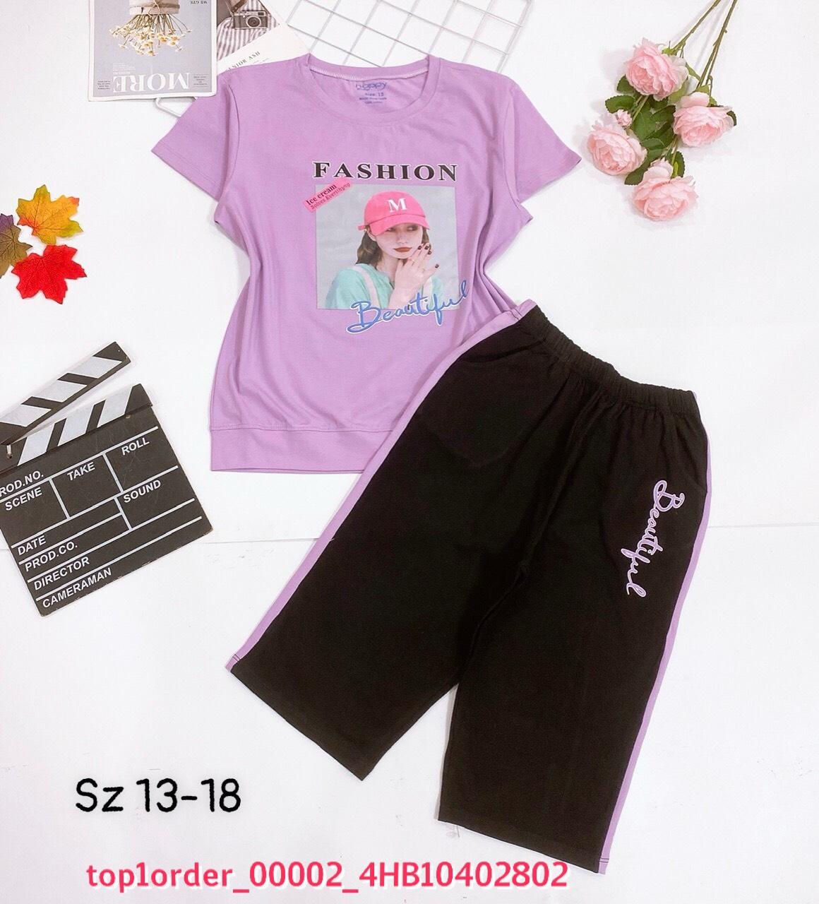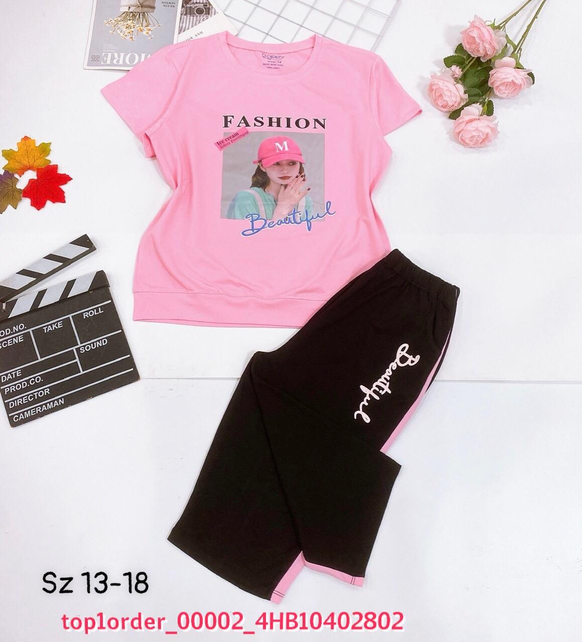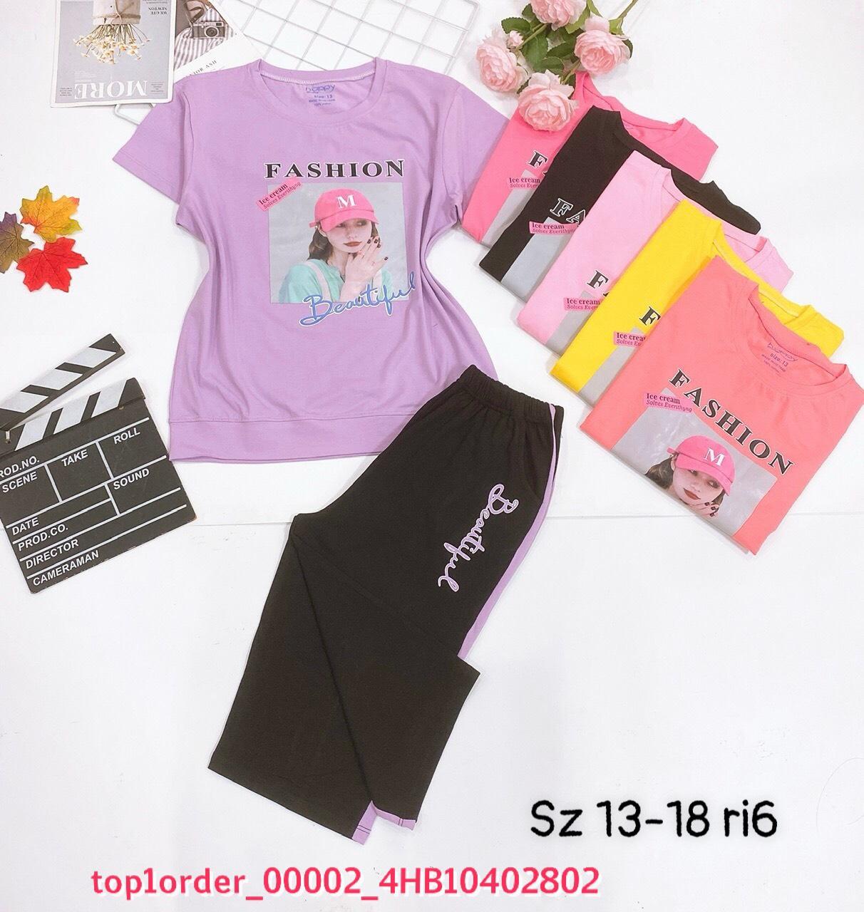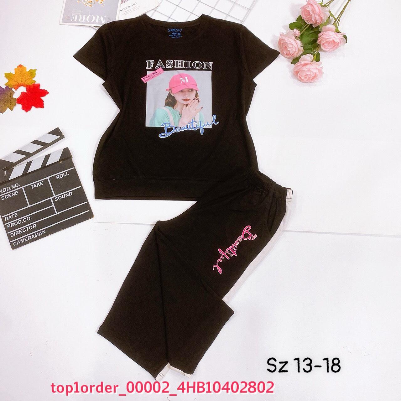 • 💖Buôn_sỉ_HN💖 Bộ bé gái, chất cotton 4c saigon, lưng chun mềm, quần phối sọc, from chuẩn, top1order_00002_4HB10402802_sg3