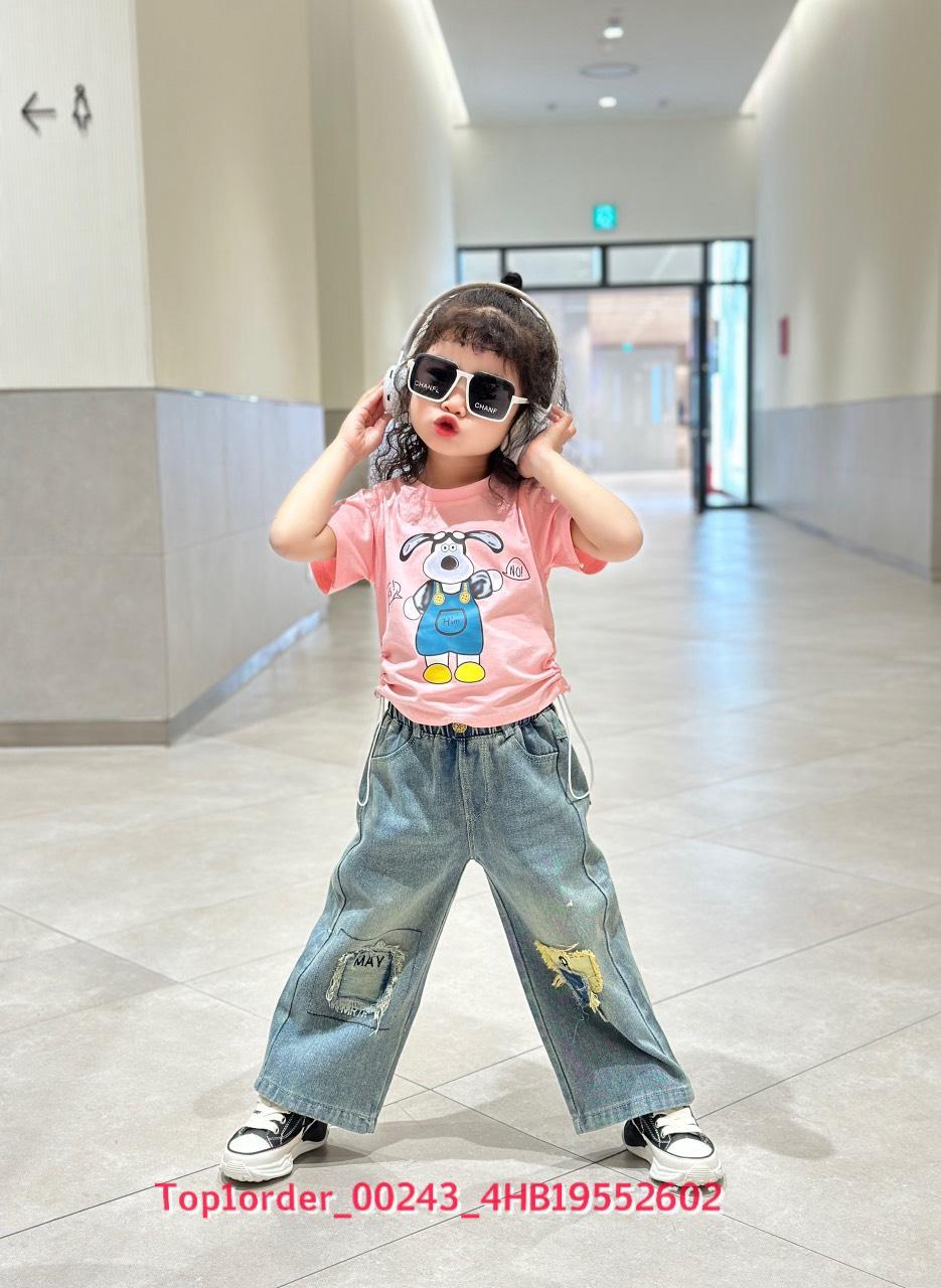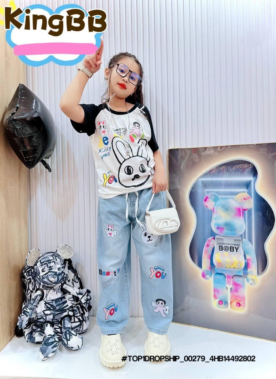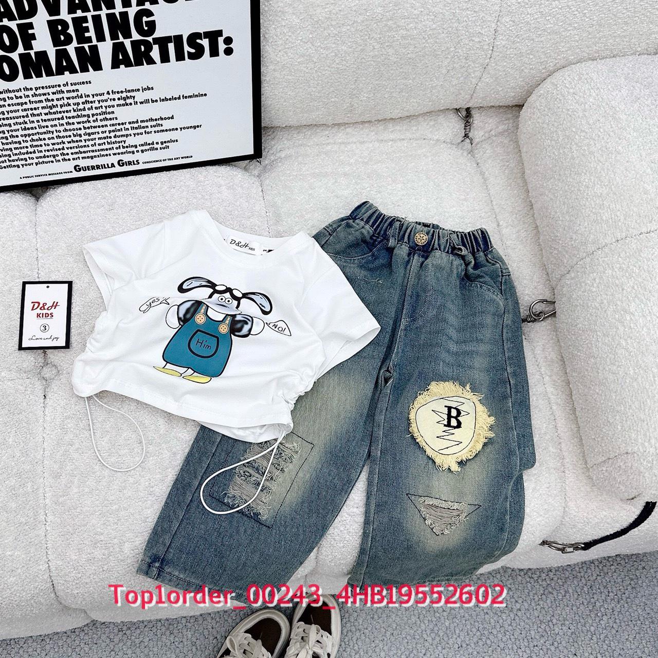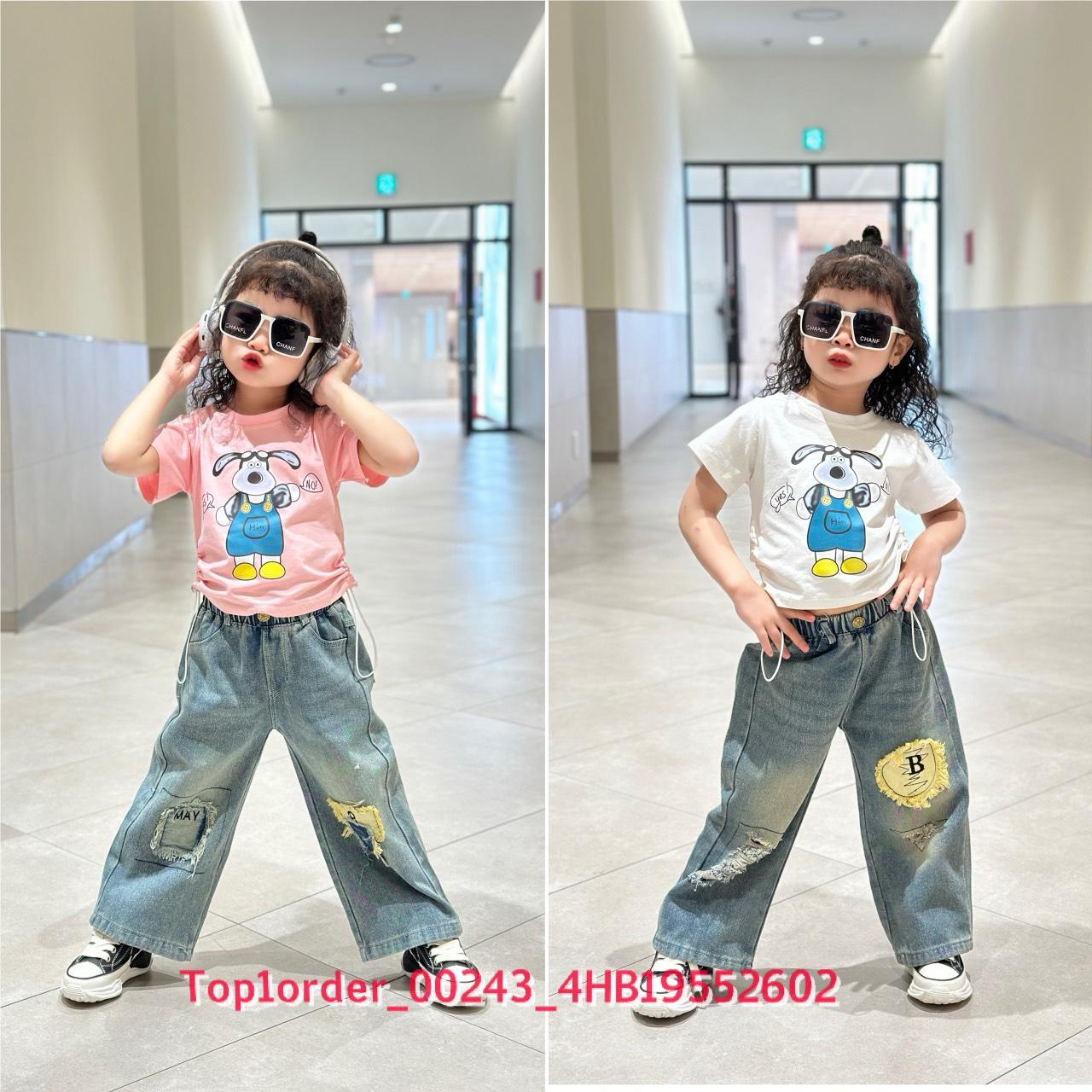 • 💖Buôn_sỉ_HN💖 Bộ bé gái, áo thun cotton rút dây, quần jean dài suông , size 10-32kg, top1order_00243_4HB20012602_sg1