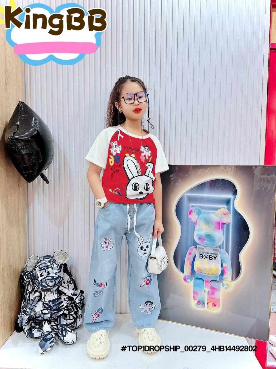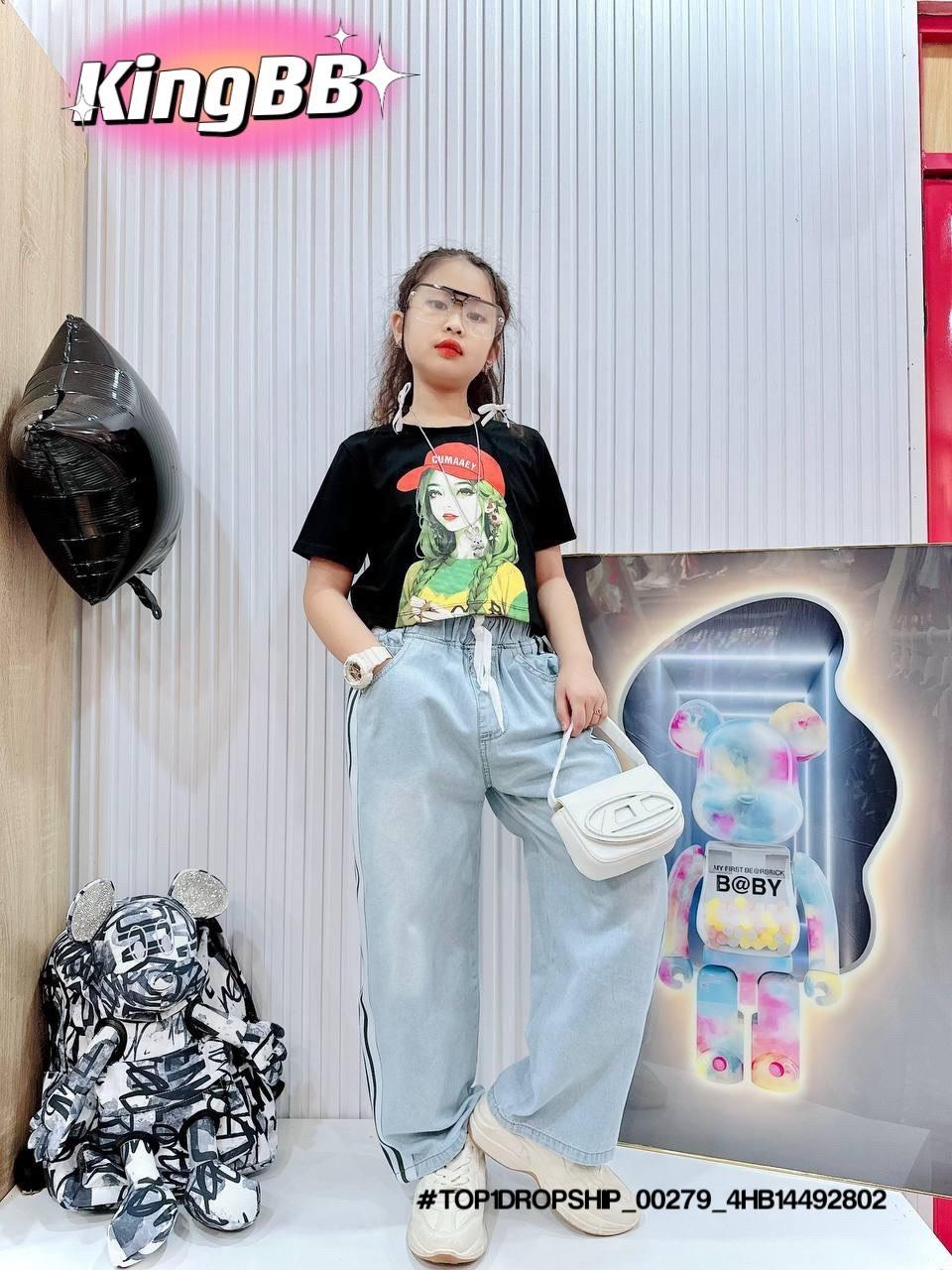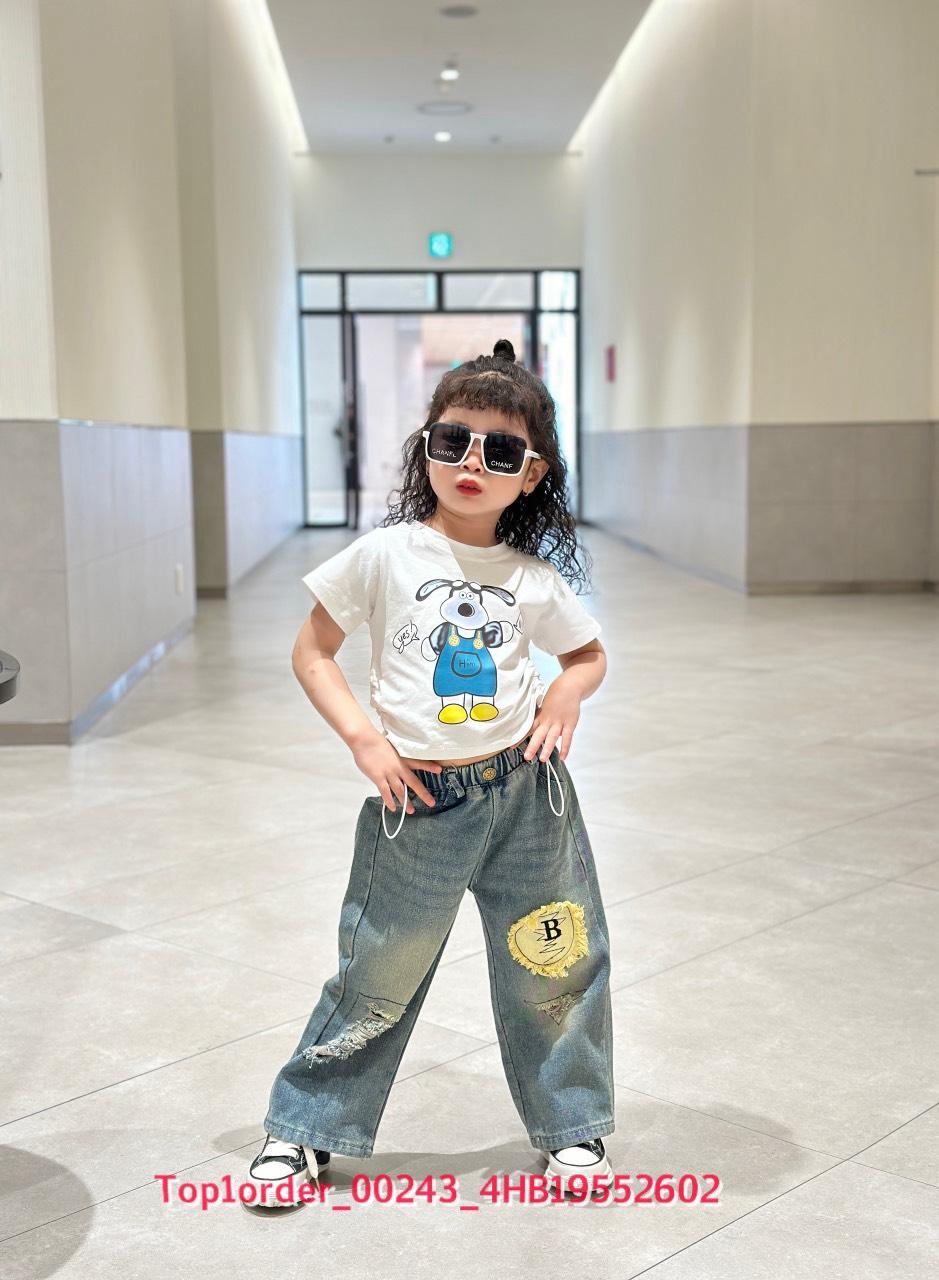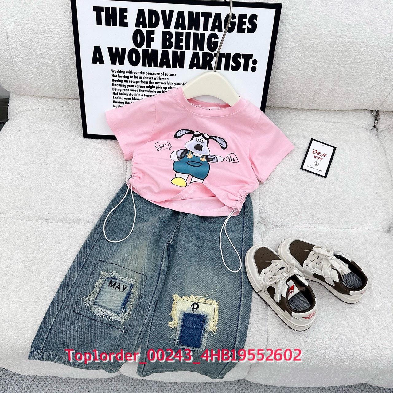 • 💖Buôn_sỉ_HN💖 Bộ bé gái, áo thun cotton rút dây, quần jean dài suông , size 10-32kg, top1order_00243_4HB20012602_sg1