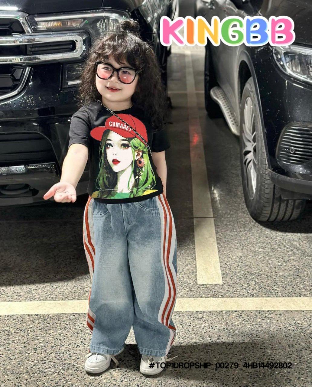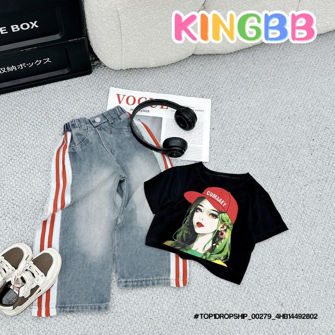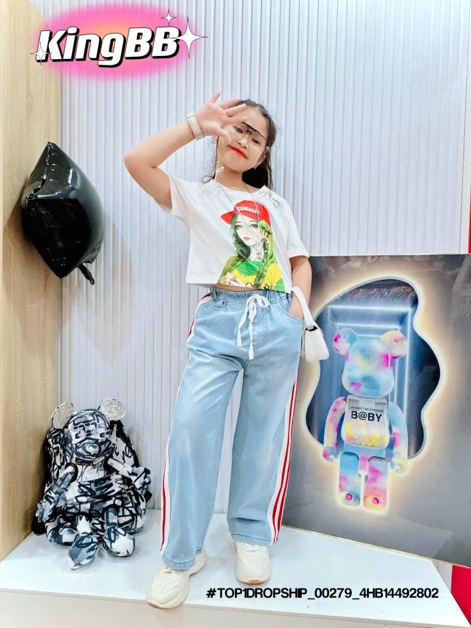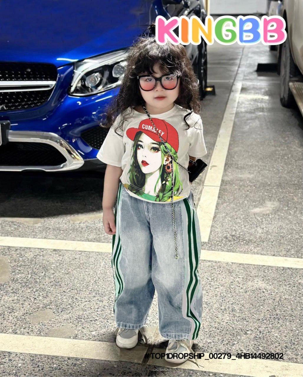 • 💖Buôn_sỉ_HN💖 Bộ bé gái, áo thun cotton rút dây, quần jean dài suông , size 10-32kg, top1order_00243_4HB20012602_sg1