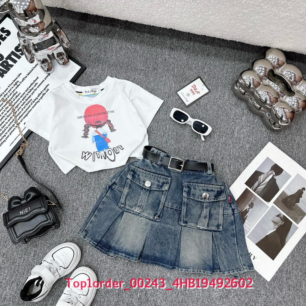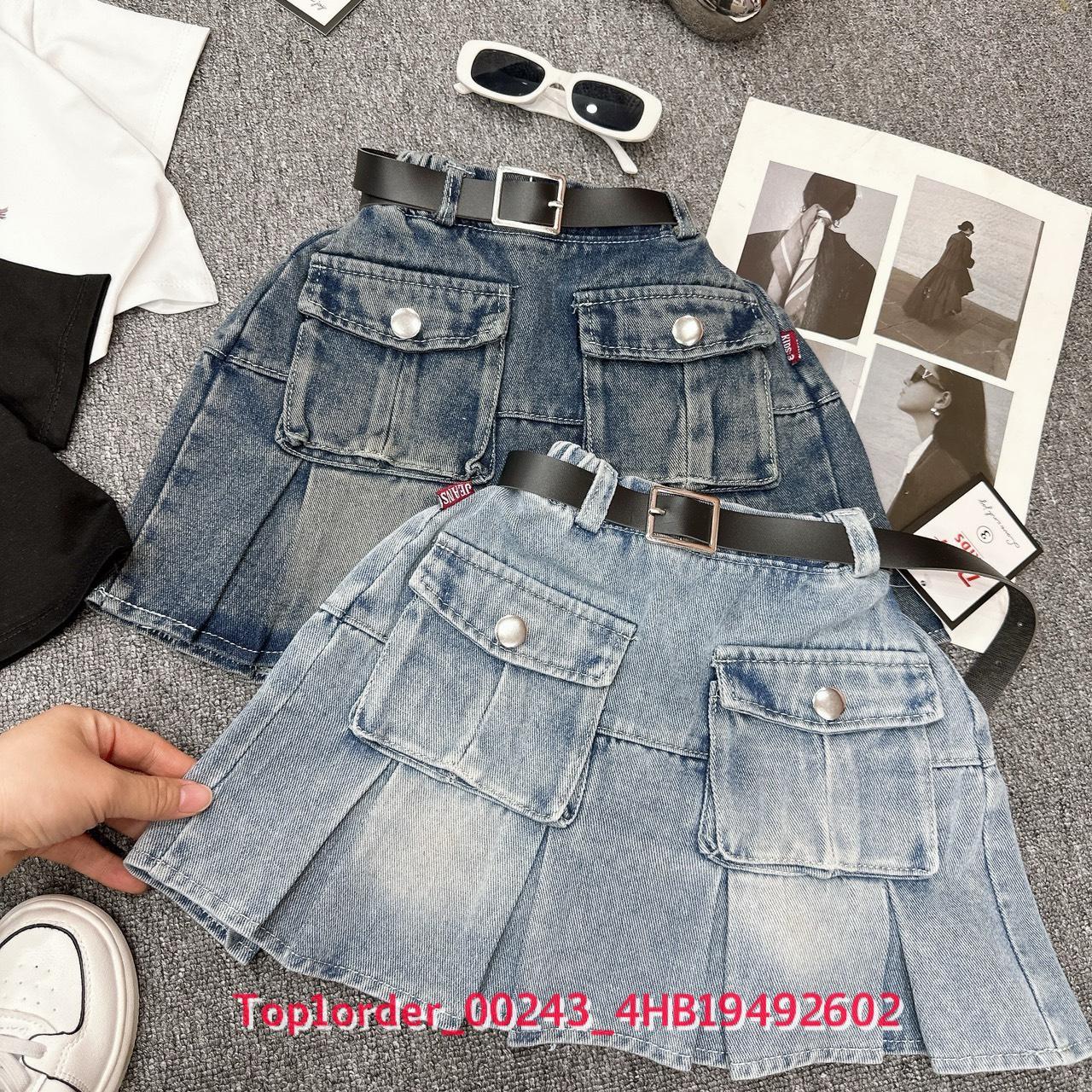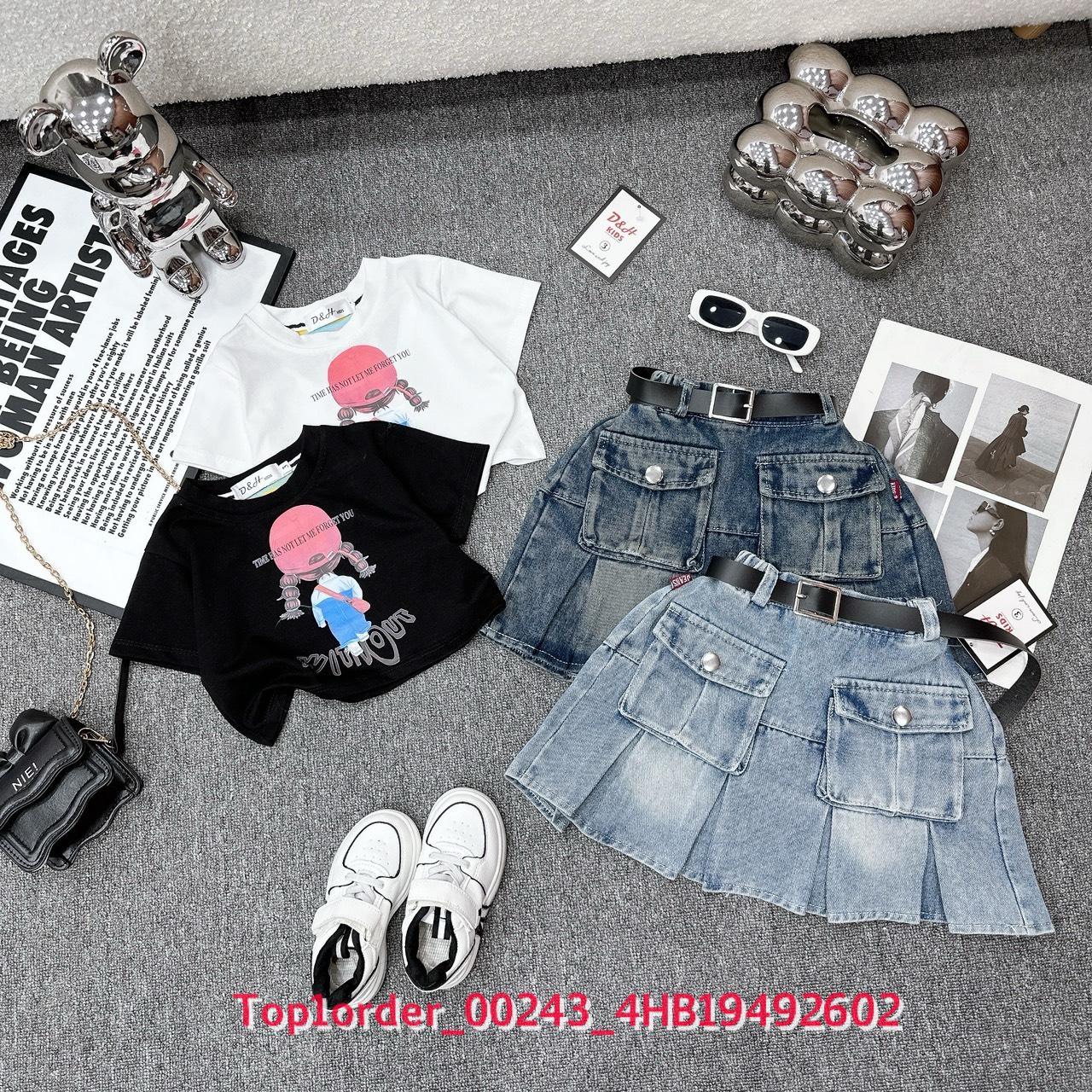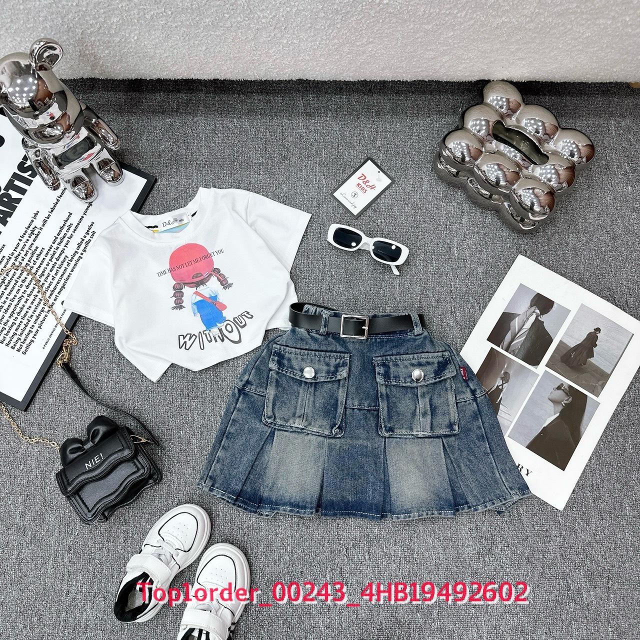 • 💖Buôn_sỉ_HN💖 Váy bé gái, áo thun cotton in hình, chân váy jean xòe túi hộp kèm đai - top1order_00243_4HB19492602_sg1