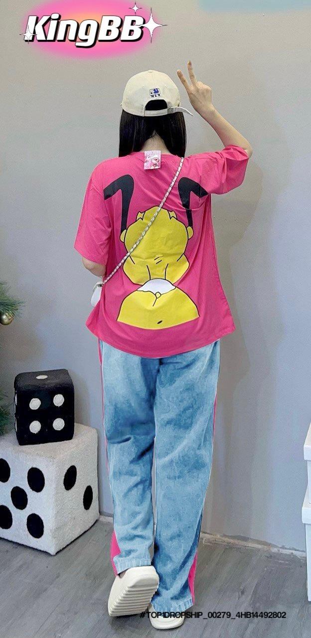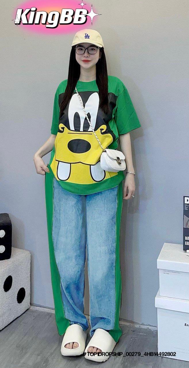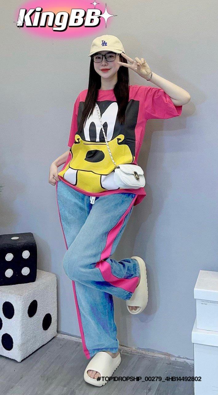 Chất liệu: Thiết kế quần suông may phá cách phối áo cotton rút sườn in hình ngộ nghĩnh