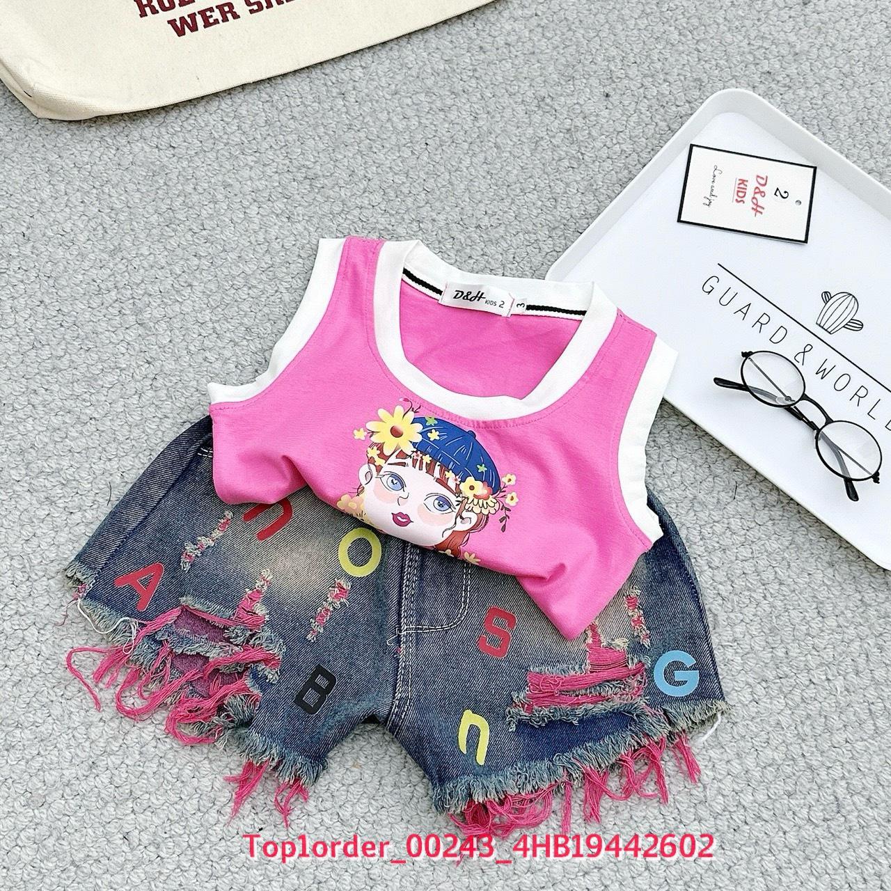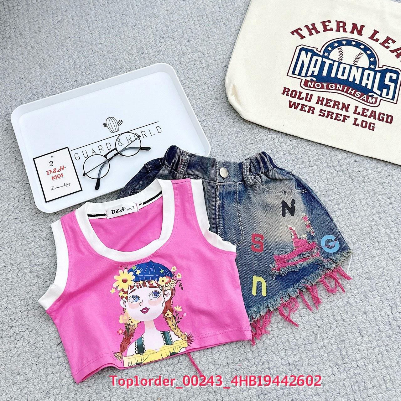 • 💖Buôn_sỉ_HN💖 Bộ bé gái, áo thun sát nách in hình, quần short jean co giãn, size 10-32kg-top1order_00243_4HB19442602_sg1