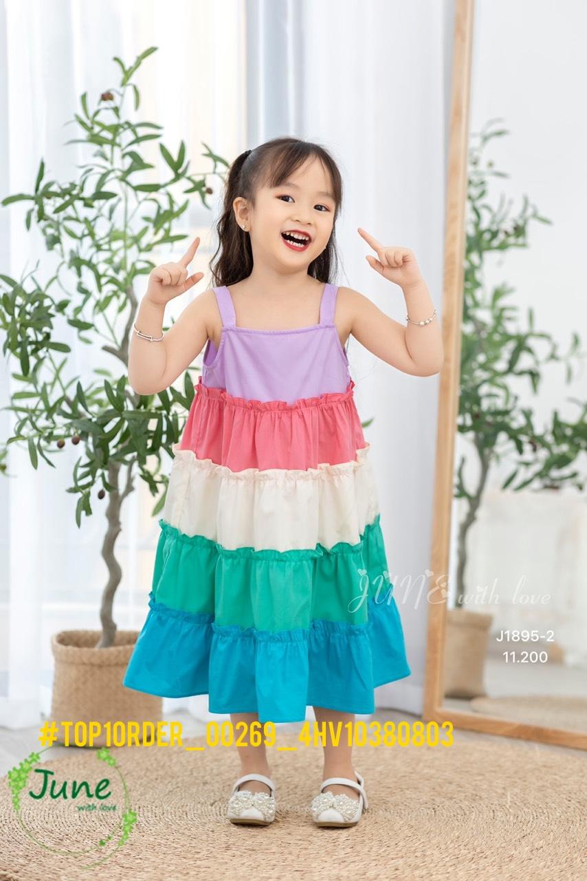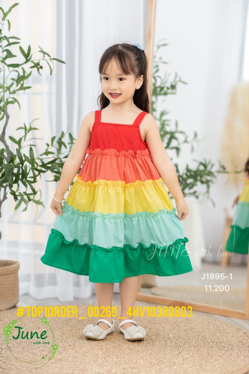 J1895 - HÀNG SẴN KHO Ôi cưng quá ạ! Váy sắc màu - rainbow 🌈 bèo tầng với các gam màu nổi bật. Bé mặc dịp nào cũng xinh xuất sắc, nổi bần bật luôn ạ. Thiết kế dáng dây dài, xoè bồng bềnh yêu lắm ạ Chất liệu thô cotton mềm mại, thấm hút mồ hôi cực tốt. Size 1y-10y ri10 sỉ 120k Giá quá tốt ạ! #top1order_00269_4HV10380803