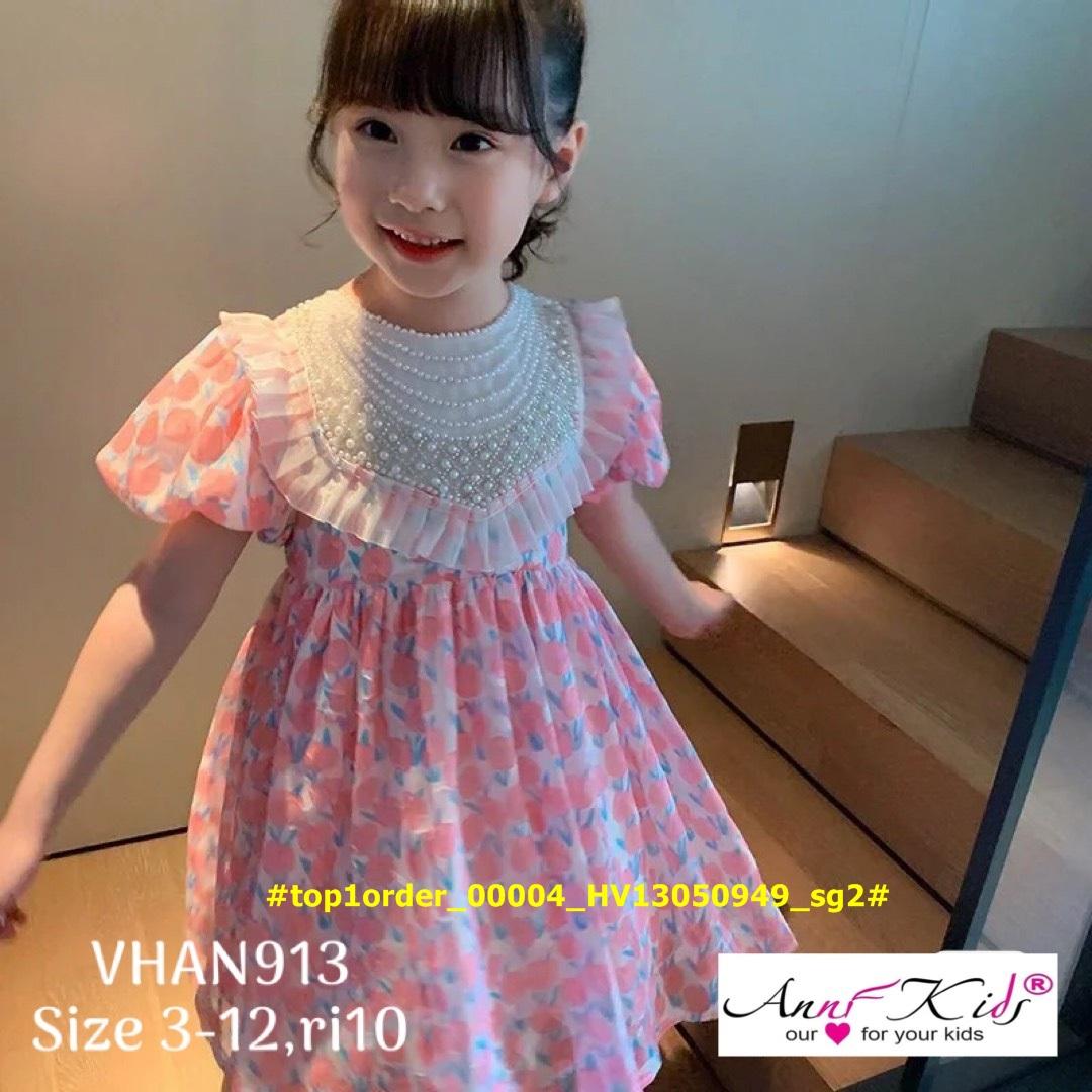 🌸🌸🌸 - Anni kids: VHAN752 Váy đũi tơ, Baby doll phối ren vai,
