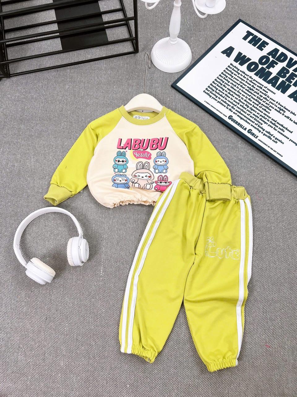 Bộ nỉ 2 da bé gái Labubu in tram siêu xinh, chất nỉ 2 da mềm đẹp bao bán shop