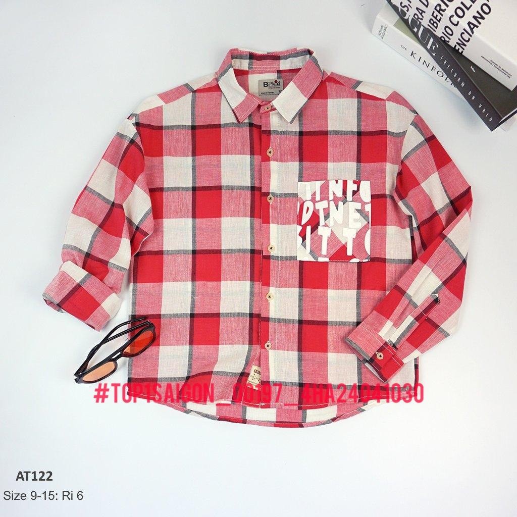 🍃 Thiết kế set sơ mi kẻ túi in chú cún ngộ nghĩnh