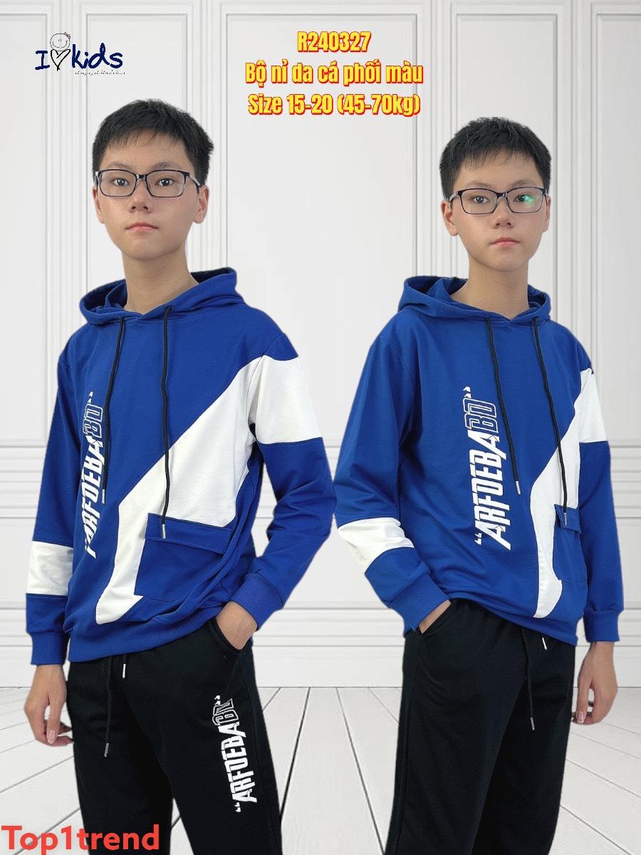 • Bộ thu đông bé trai cao cấp, chất nỉ da cá phối màu đẹp, cá tính, size 15t -20t(45-70kg), R240327M1_sg2