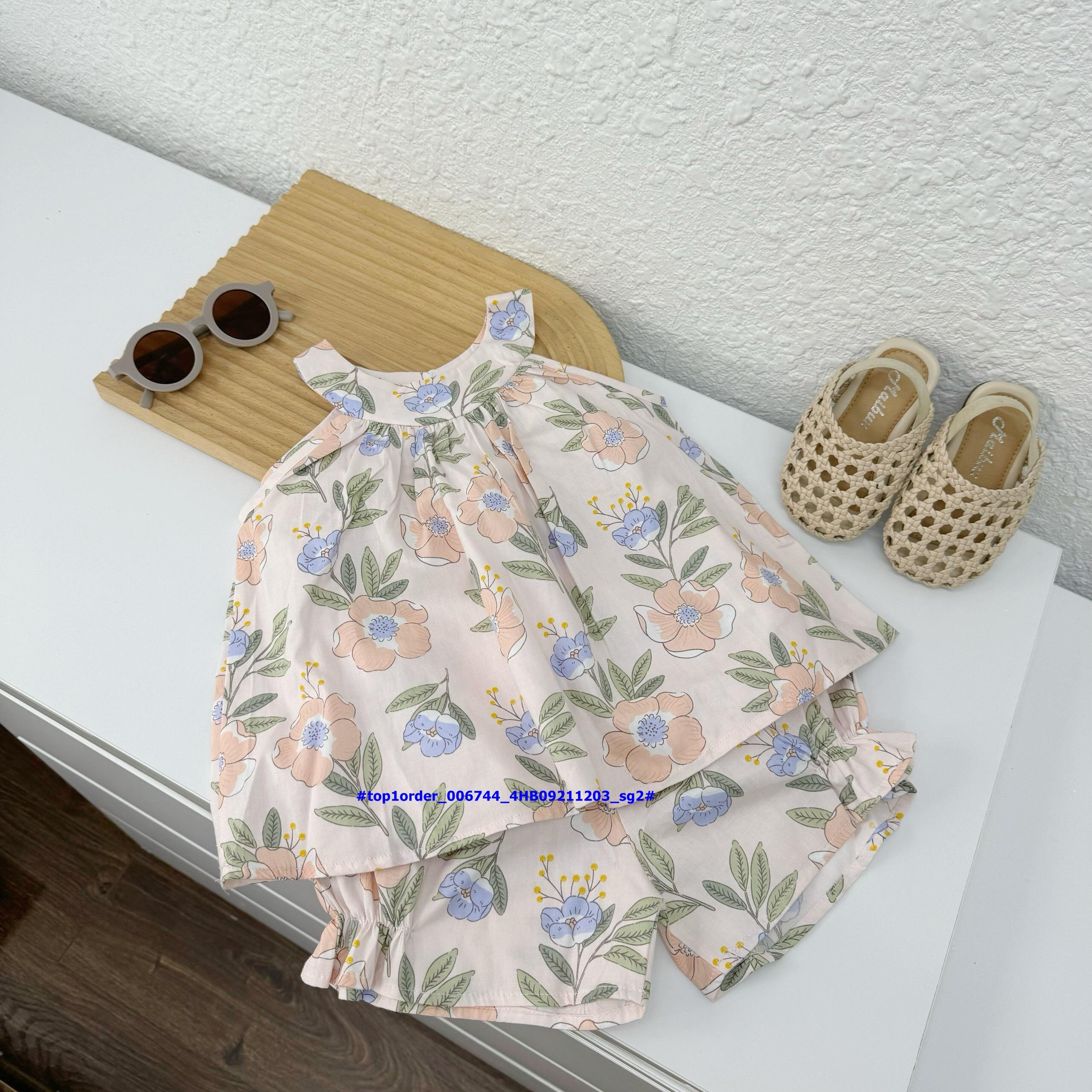 • 💖Buôn_sỉ_HN💖 Bộ bé gái, áo cổ yếm, quần đùi nhún chun,chất thô hoa mềm mát, size 8-23kg,top1order_006744_4HB09211203_sg2