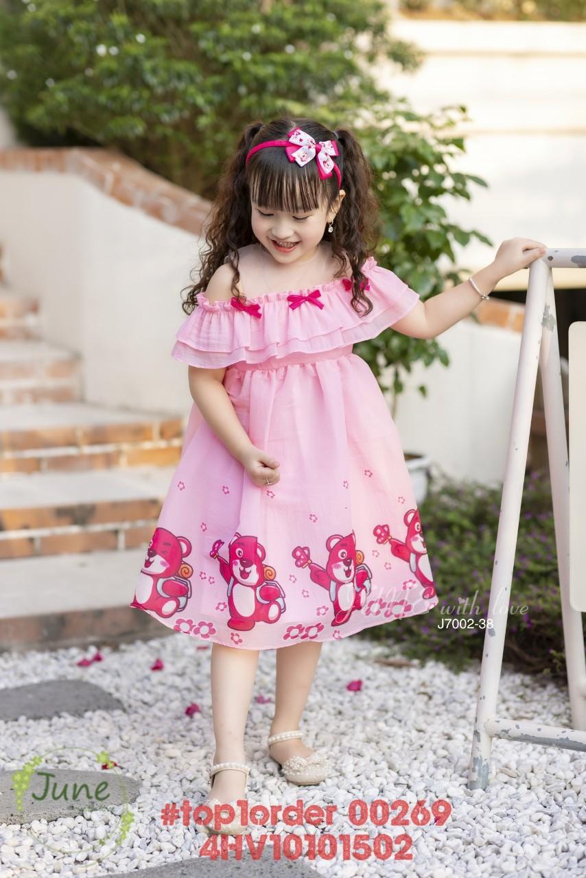 💖Buôn_sỉ_HN💖 Váy bé gái, chất tơ mềm mại, tay bèo, in gấu dâu, size 1t-10t, top1order_00269_4HV10101502_sg1