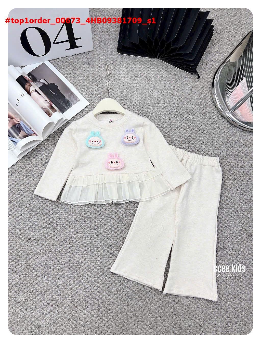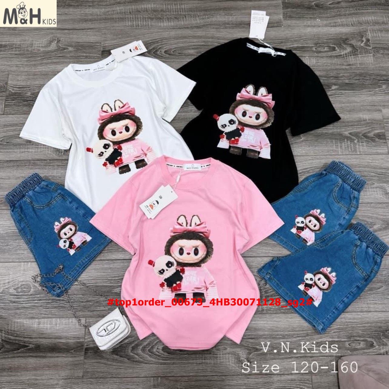 💖Buôn_sỉ_HN💖 Set yếm bé gái, kèm gấu Labubu siêu hot, áo thun cotton, quần yếm kaki co dãn, tone màu ngọt xỉu, size 15-30kg, mã đặt hàng: top1order_00673_4TB18101155_sg2